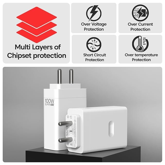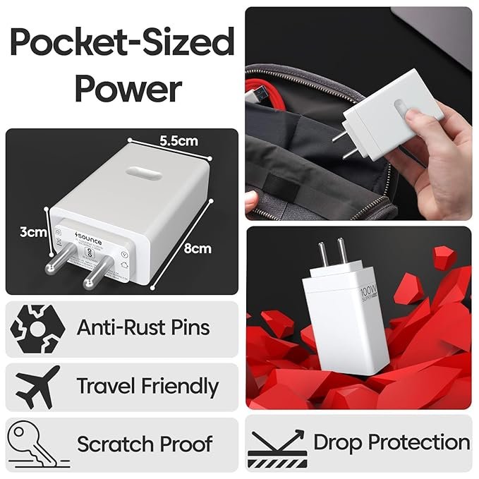 Charge your device at lightning speed with 100W output, capable of powering up to 80% in just ~38 minutes (device dependent). Perfect for users who want maximum performance.